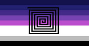 Třetí alternativní vlajka (výše) ace-spec: Fialová představuje všechny variace asexuálních identit, bílá představuje inkluzivitu, šedá představuje přijetí sebe sama a druhých, černá představuje jedince aro-ace a spirála představuje, jak odlišné jsou ace-spec sexuality od allo-spec sexuality.